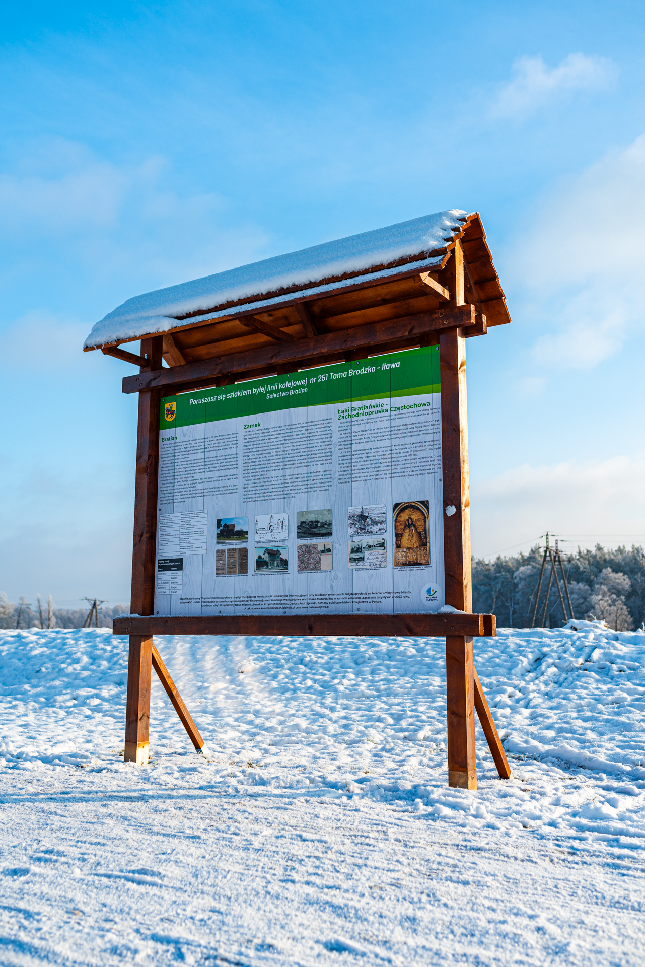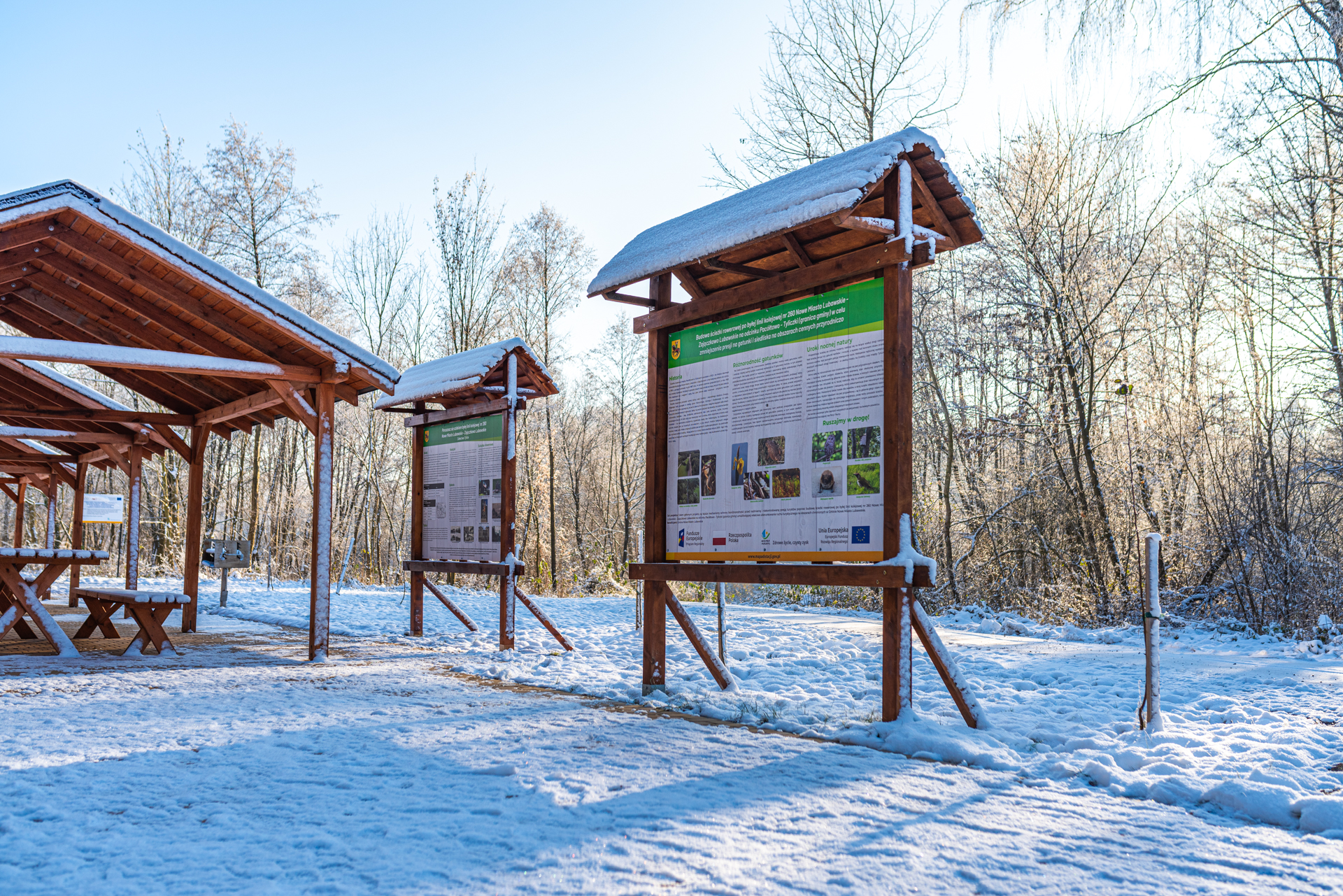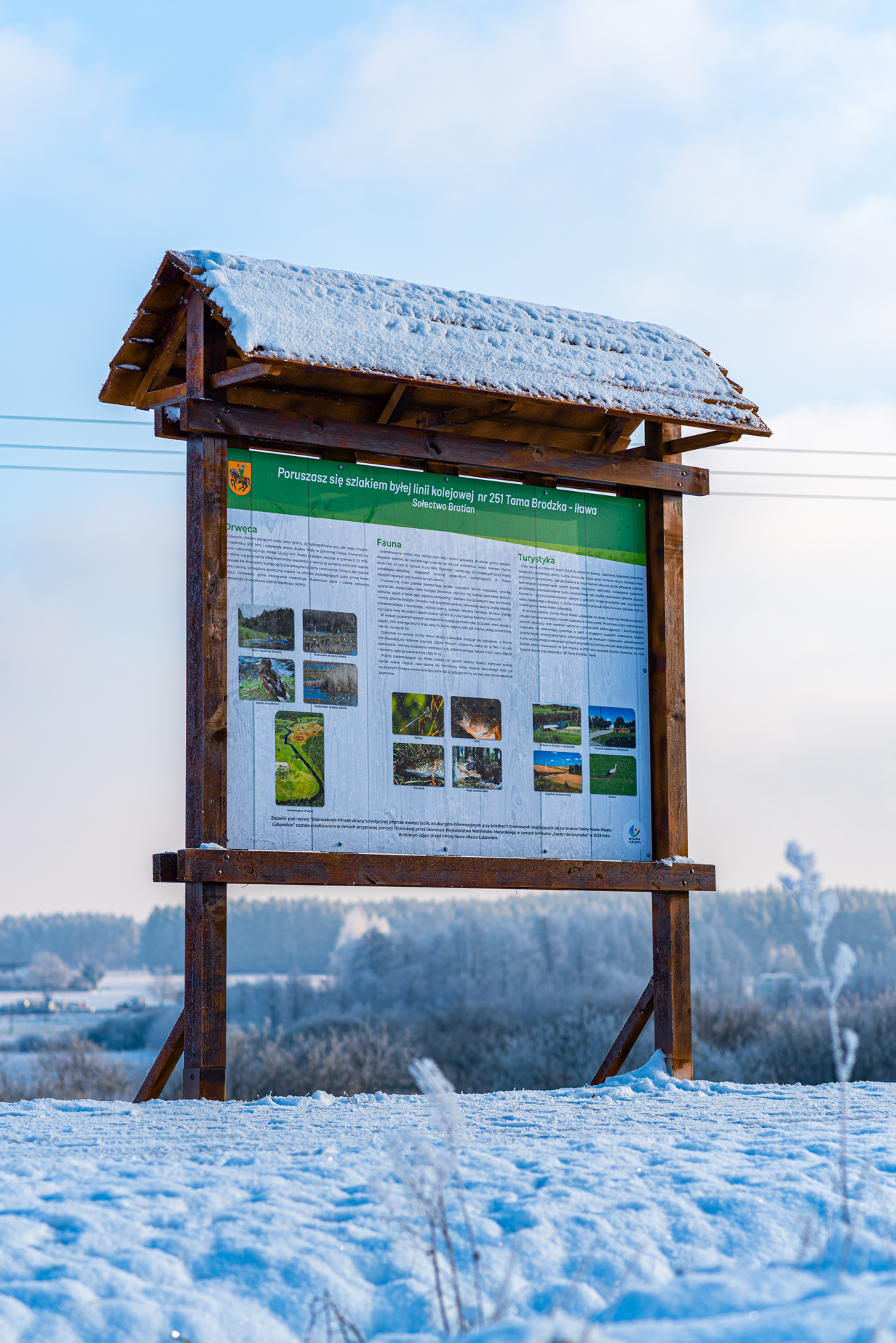- Tablice informacyjne – dla ścieżek rowerowych i punktów turystycznych.
